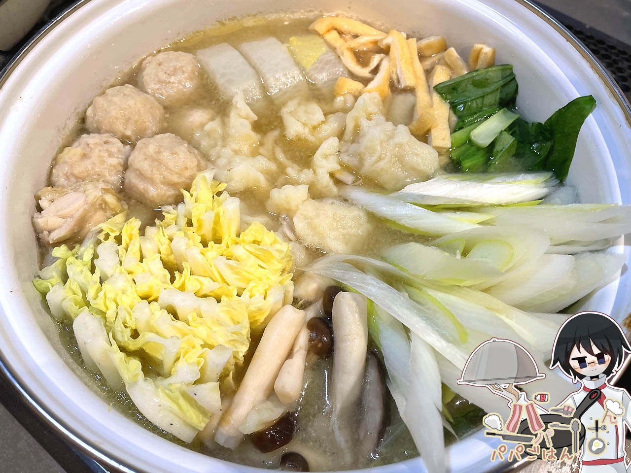 きゅうり・ニンジン・ピーマン以外に、大根の葉や白菜の柔らかいところを入れた冬版きりざいを作ったので既に結構工数かかったのだが、これから何かおかず作るよりはカレーリメイクの方が楽...と喜んだのも束の間、勤務中に病院に寄った ママ から発熱したとの連絡と共に「鍋が食べたい」との要望を貰ったため、今夜は鶏(もも+鶏団子)と、うどん無かったから(消化が良いかは解らないけど)すいとん入れ、味噌味仕立てにした鍋にしました。