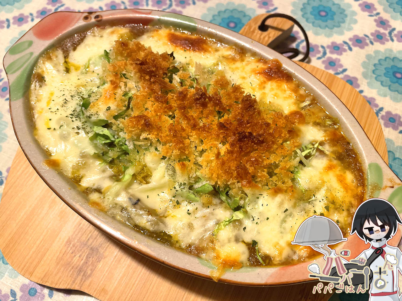 味は良かったようで「また食べたい」を貰えたものの、カレーが予想以上に余ってたので消費したくて多めに入れてしまい、マッシュポテトがあまり入れられなかったため、何だか普通のグラタンっぽい仕上がりになってしまった...orz