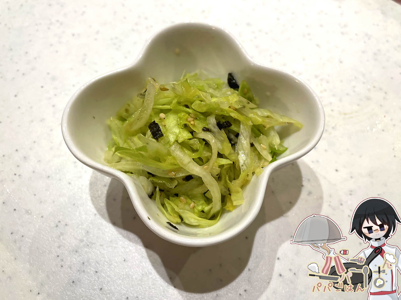 ボウルに刻みニンニクスプーン1/2&ごま油・醤油・酢・Exvオリーブオイル各小さじ1&はちみつ少量&塩胡椒を混ぜ、千切りにしたレタス&海苔と炒りごまを和えてみました。付け合わせとしては良い感じなものの、パパ 的にはもう一押し何か欲しい感じだが、薄味好みな りく は、このままで良いとの事。