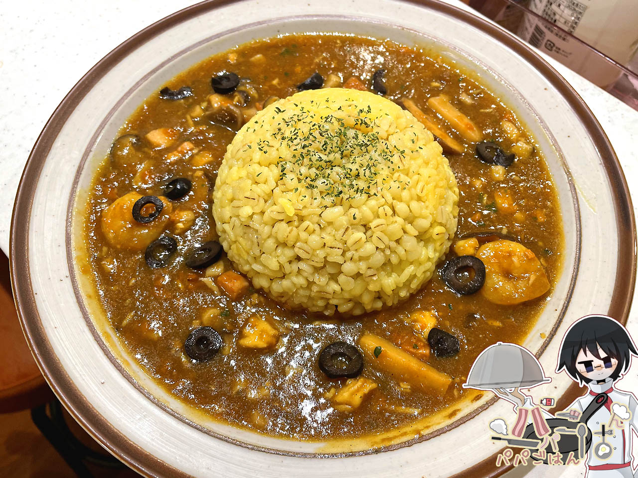 ジェノベーゼ で使った冷凍のエビ&イカが半量残っているのを思い出したので、今週の木曜カレーデーは シーフードカレー 。海鮮の量が心許なかったので、きのこを多めに入れてみました。