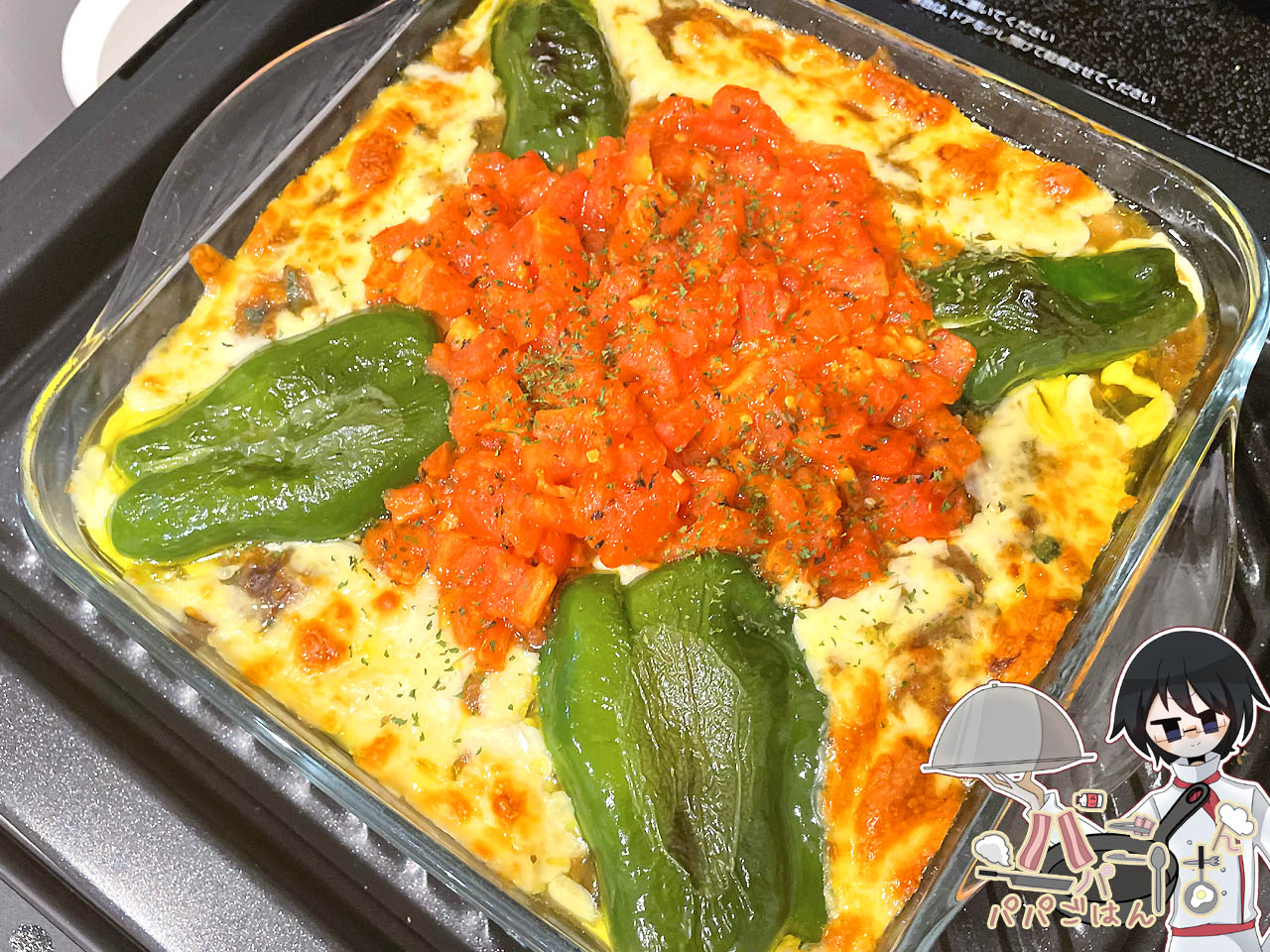 今週もトマトは2個しか補給されなかったのですが、大きめだったので半分ドリア・半分付け合わせに使うつもりでいたところ、湯剥きして切ってみたら少し固め...。これは火を入れた方がいいかな?と考え、Exvオリーブオイル・乾燥バジルと和えて全量ドリアに使う事にしたため、大盛りになってしまいましたw