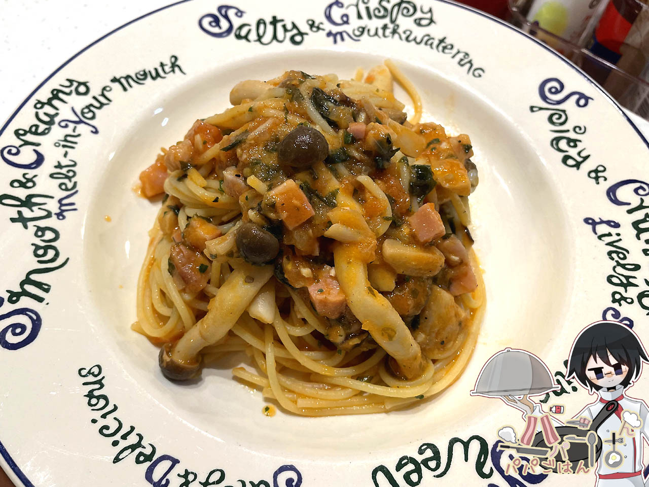 今週の日曜パスタランチは、食材整理のトマトソースパスタ。使いかけアンチョビやら収穫して冷凍しておいたバジルやら諸々を消化しました。