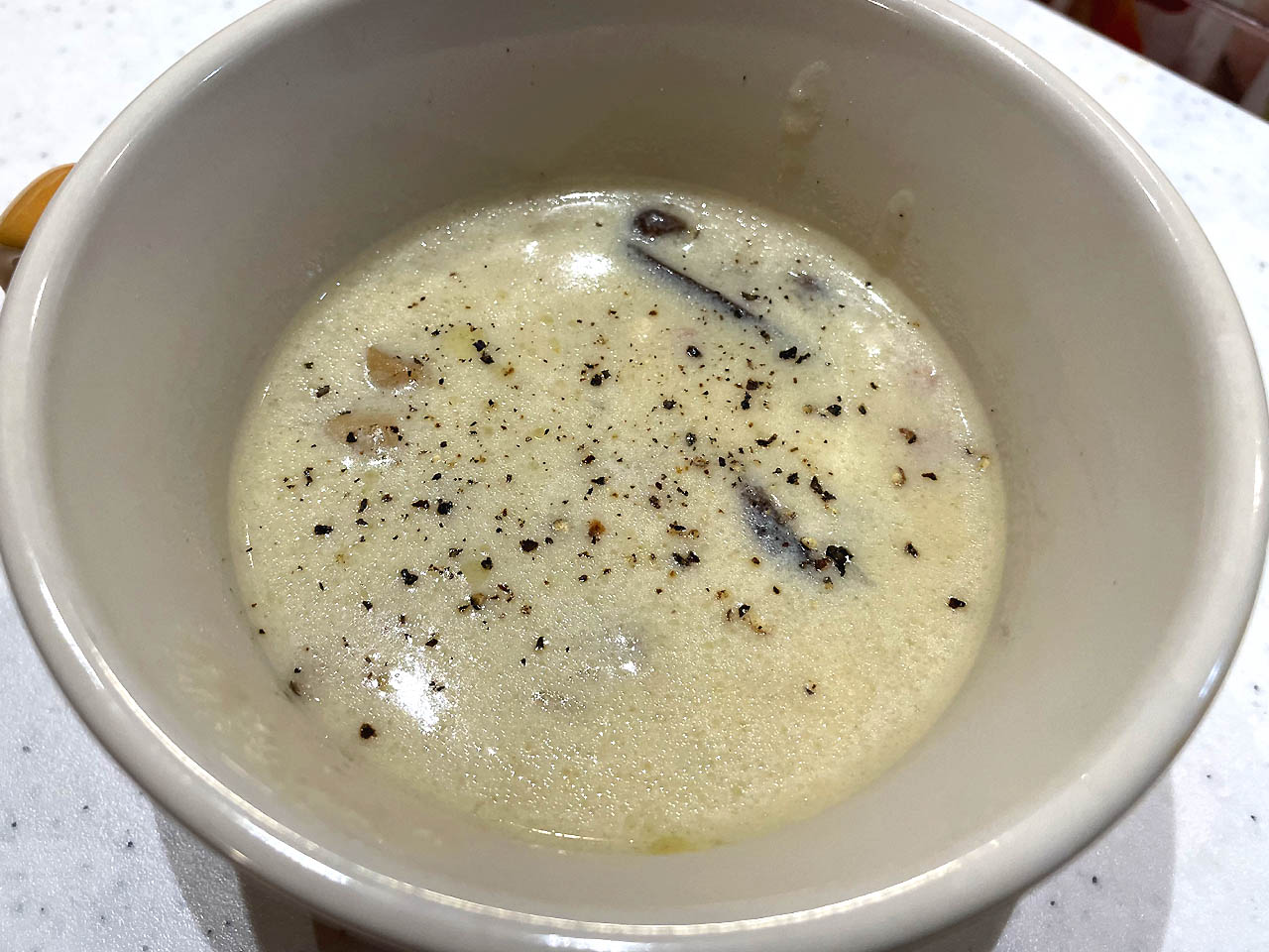 実は当初の計画では、これに 食パンピザ をつけるつもりでパンに合うクリームスープを作ったのですが、「流石に食べきれない!」と言われたので、今回は保留にしました(因みに翌月曜日の昼食に、食パンピザをリベンジして作ったのですが、写真は撮り忘れてしまいました;)。