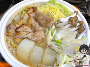 肉巾着の方は、分量はレシピページ記載と同じ。前述の通りちくわぶや竹輪も入れておでん風に仕上げる予定でしたが、冷蔵庫に大根・たまご・ソーセージがあったので、これらも投入した結果、ほぼ「おでん」として大きな鍋に一杯出来上がりましたw