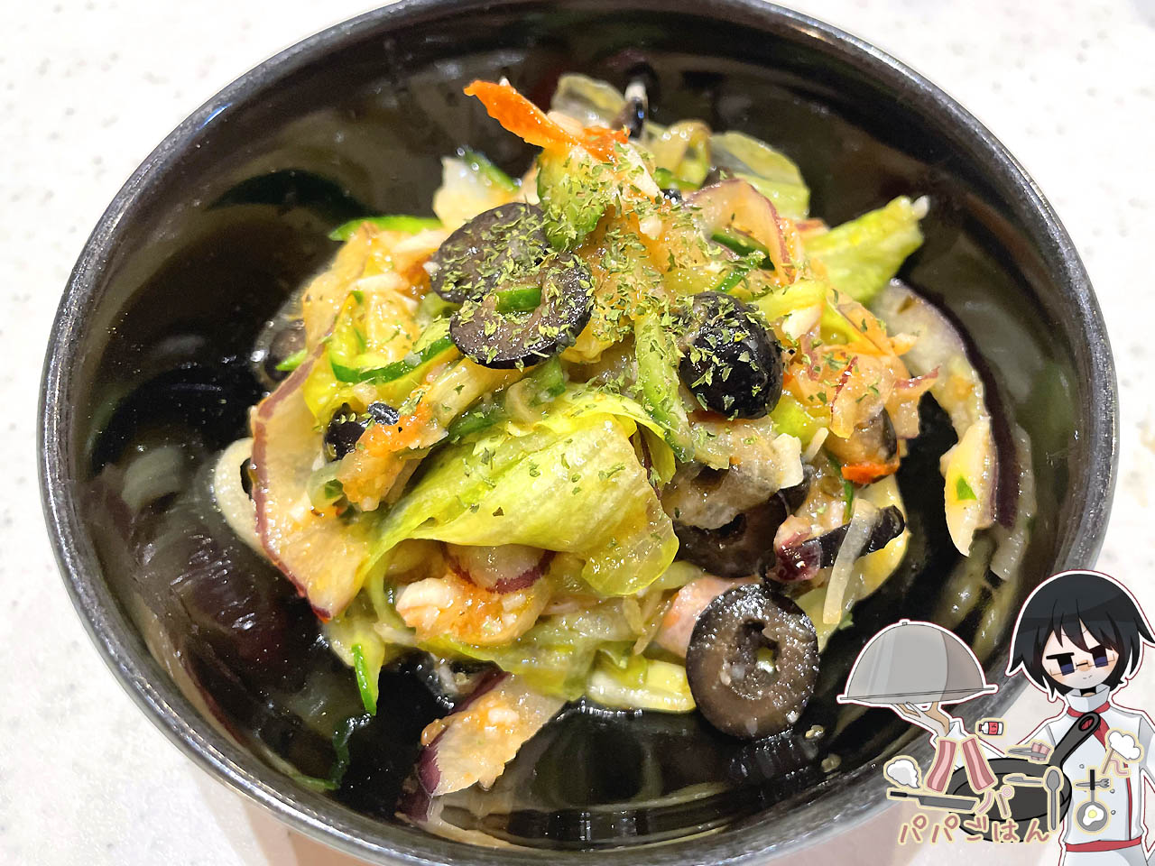 パパ 的にはいつも通りに作った"それっぽいサラダ"なのですが、今日のは何故か ママ の評価が高く、「デパ地下で売ってるやつ!」と言って貰えました。パンとの相性が良いらしく、バゲットに乗せて完成写真を撮り、レシピを載せるべきと勧められたので、良い写真が撮れたらやってみたいと思いますw