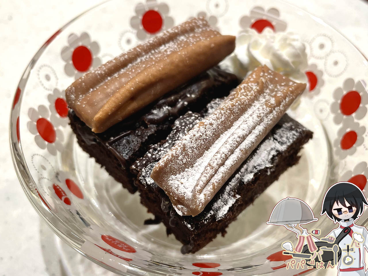 また、バレンタイン第2弾として、ママ がブラウニーを作ってくれたので、食後に頂きました。感謝、感謝♪ トッピングしてあるのは パパ の好物ルマンド。普段甘いものは余り食べないのだけど、甘さ控えめで食べやすく、ペロりと間食してしましました。