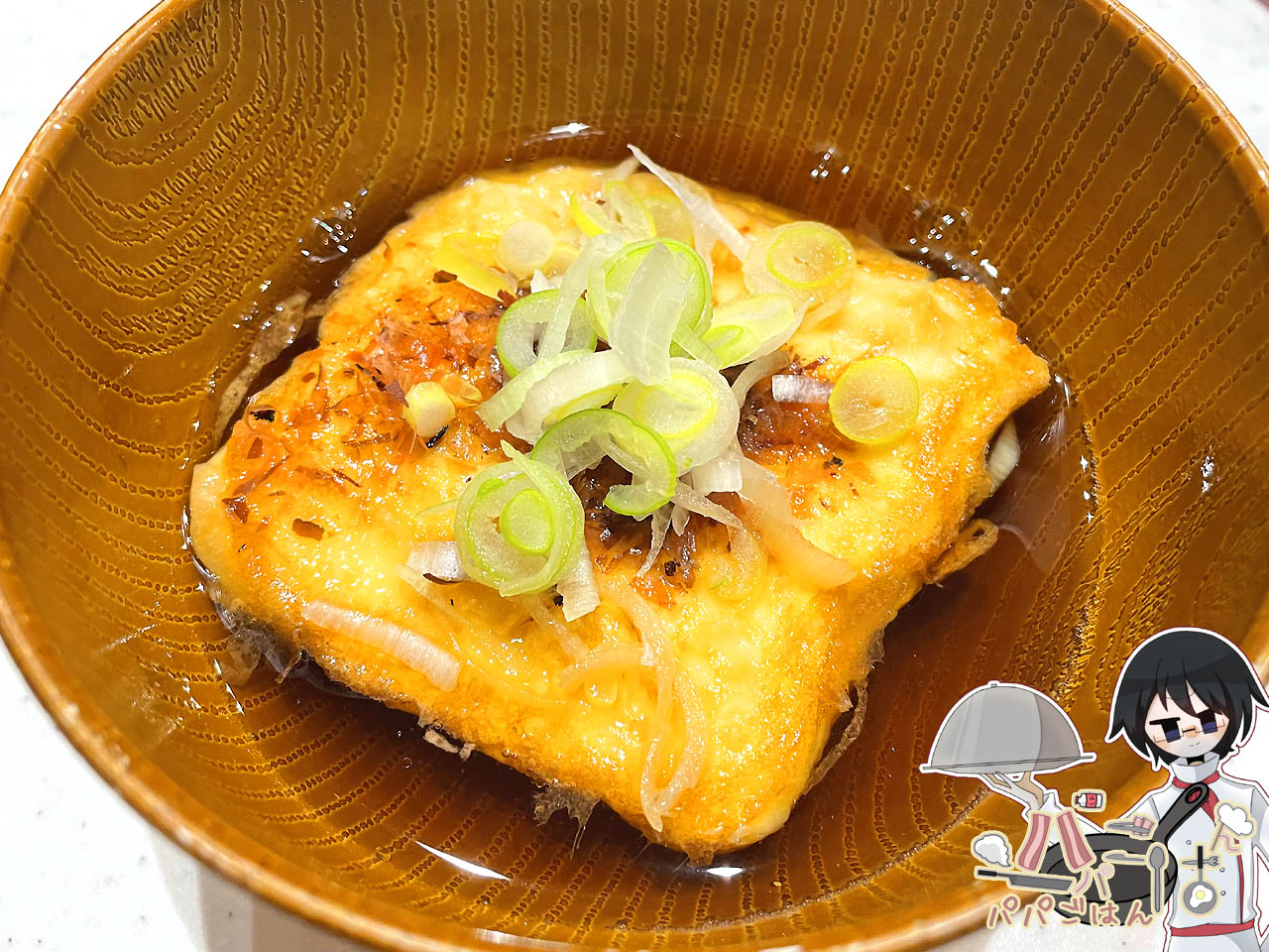 - 器に灯豆腐を盛り付けてだし汁をかけ、鰹節・ネギを散らしたら完成。お好みで七味唐辛子をかけて召し上がってください。